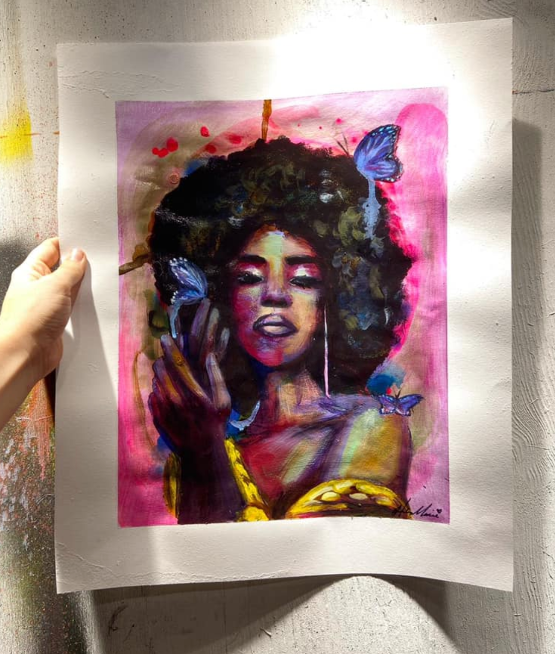 11x14 inches original ink, markers, and pastels on fine art paper. Available for purchase without a frame.